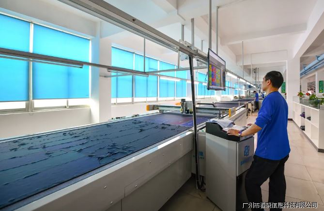 具备生产条件后,面料将被放入智能裁床设备进行自动化单裁。智能裁剪系统会根据数字中心传输的信息流,进行全自动定位、模块化、智能化、数据化操作,有效确保面料裁片精确度,裁切效率较传统裁剪提升15%以上。